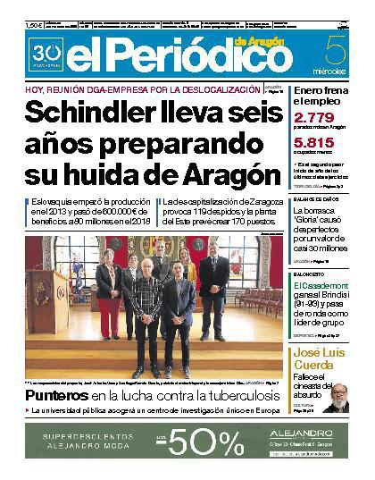 - Front page of the "El Periódico de Aragón" on Feb 5, 2020.